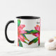 Pretty mug with a red Bromeliad flower. The name on the mug can be changed to yours. Would make a nice Christmas mug.