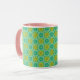 This is a mugs. It has a sophisticated design with a harmonious combination of yellow and mint. have a nice day