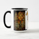 The story about the images on the mug, are very interesting. The first image from left to right. On the of Tutankhamun. Tutankhamun was only eight or nine when he became ruler of Eygpt. As King at such a young age, most of the decision-making was made by two senior figures, likely to have been Ay (father of Nefertiti) and Horemheb, an army commander. There are more facts about Tutankhamun. The story about the cat image, no story, it is just an image of an Egyptian cat. And the third image. Throne Back Depicting Tutankhamen and Queen, New Kingdom, 18th Dyn., c. 1360 BCE, Cairo