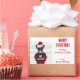 Funny Merry Christmas mugshot featuring a bulldog wearing a red Santa Claus costume. Amusing Christmas design to brighten up someones life.