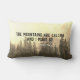 Muir quote throw pillow mountain landscape art with text The mountains are calling and I must go by John Muir. Creative commons image from pixabay.