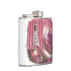 The flask itself is fine. It’s a cheap flask, obviously bought in bulk, however am prepared to overlook that. Given that it is a personalized item, I would have liked to have seen gift boxing instead of the generic packaging. Terrible printing, and/or quality. It’s a cheap, tacky vinyl. It is not cut straight and is also applied in a way that it is overhanging the bottom, causing the glue to catch on items and it will eventually roll and tear, damaging the wrap.