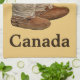 My favourite pair of mukluks and text reading "Canada" superimposed on a buckskin background. Far superior to standard winter boots, a good pair of mukluks, and thick socks, will keep your feet nice and toasty, no matter how cold it may be. They keep my feet warm even at temperatures below minus 60 Fahrenheit.