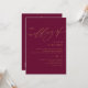 The deep Mulberry hue exudes romance and sophistication, while the shimmering Gold text adds a touch of opulence. The modern script dances gracefully across the card, creating a one-of-a-kind design that perfectly captures the essence of your special day.