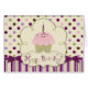 Sweet polka dot print with matching stripe and 3D look bow and birthday tag and a sweet cupcake with candle.