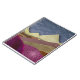 An abstract landscape with unique colours and textures showing a mountain scene in shades of purple, tan, beige, and brown.