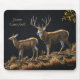 Mule deer buck and doe on a sunlit ridge glowing in autumn coloured light.