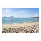A lonely Atlantic wave breaks on a summer beach at Mulrany Strand near Westport, County Mayo, on the west coast of Ireland. The empty shore is strewn with large pebbles rounded by the pounding ocean, and blue mountains gleam on the misty horizon.