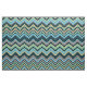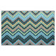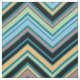 A mulit-colour chevron pattern with irregular size zig-zag stripes, predominantly blue colour.