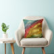 This stylish pillow features a photo of multi-coloured fabric reminiscent of a rainbow. The colours shade from green to blue to red to golden yellow, and back to green. The design is on both sides.