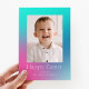 Cute and trendy Easter card featuring your photo with a pink, turquoise, and blue gradient background. "Happy Easter" is displayed in white modern lettering with your name shown below. The gradient design repeats on the back of the unique Easter card.