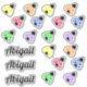 Adorable bright lady bugs with polka dotted wings in a rainbow of colours including blue, purple, pink, orange, yellow, and green. Personalise with the name of your choice.