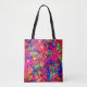 Beautiful multi-coloured tote bag with bright colours of red, blue, purple and green.