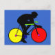 This product shows a multi coloured bicycle being ridden by a silhouette man. This bright and nice image makes a lovely product and will brighten up an occasion. The bikes has red and yellow wheels and multi coloured frame.