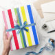 Multi Coloured Red Yellow pink orange Green blue candy Stripe lines on white background Wrapping Paper