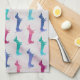 Dachshund pattern featuring multi-coloured watercolor doxies with textured background.