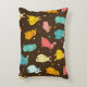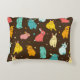 Multi-coloured, different rabbits, hares on a dark decorative cushion
