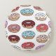 Multi-coloured doughnuts hand drawn seamless patte round cushion