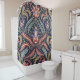 Multi Coloured Floral Damask shower curtain featuring a beautiful pattern with blue, pink, purple & gold set on black.