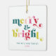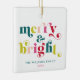 Merry & Bright! This multi-coloured modern Christmas ornament has a trendy retro serif font in green lime green, pink, hot pink and red.. Personalise it with your special holiday message and the names of your family members on the back. Celebrate the holidays with this joyful, cheerful collection with your family and your children with these perfect gifts for your loved ones.