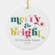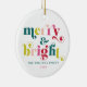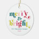 Merry & Bright! This multi-coloured modern Christmas ornament has a trendy retro serif font in green lime green, pink, hot pink and red.. Personalise it with your special holiday message and the names of your family members on the back. Celebrate the holidays with this joyful, cheerful collection with your family and your children with these perfect gifts for your loved ones.