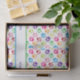 Bright and colourful paw print pattern on cute tissue paper with stripe to add your customisation. Attractive way to promote a brand or business website or to mark a celebration.