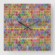 multi-coloured peace symbols pattern square wall clock
