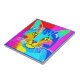 Multi Coloured Pop Art Cat Portrait Ceramic Tile