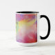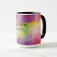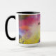 A burst of colour two toned coffee mug with black interior and handle. "WAKE UP TO COFFEE"