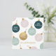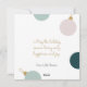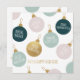 A festive International Christmas card design with colourful Christmas baubles in pink, green, blue and gold.