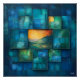 This stunning geometric art print features a multi-layered arrangement of teal and blue squares with a striking central landscape in warm hues of orange and green. The structured grid creates depth, drawing the viewer’s eye into the serene scene at the centre. Perfect for modern interiors, this abstract design combines geometric patterns with natural beauty, offering a unique blend of structure and tranquillity.