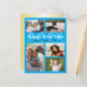 Family photo collage postcard with "happy new year" text and year numbers behind. Bright blue with white text for the greeting and dark blue for the signature. There is plenty of space to include names. Upload five favourite photos to the templates provided and share stories from the past year in pictures. Reverse is gradient gold colour with a place to type in a mailing address - which will have to be done individually for each address. OR, delete that text and hand write after ordering.