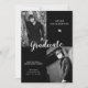 Black and white 3 photo collage graduation invitation features a graduation cap, the word “Graduate” set in a trendy script font. Add 2 photos to the front of the invite and 1 on the reverse back side. A great choice for those who want to share photos of the graduate. A digital download is also available for sustainable celebrations. This invitation is COMPLETELY customisable: colours, fonts, icons. ✏️Simply clicking on the "PERSONALIZE" button to begin editing. 🌀Need a styled-for-you design? 🎨Custom orders are always welcome 📫Click the Contact Botton below!