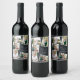 Multi photo modern elegant script black wine label