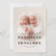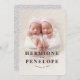 Multi photo twin modern geometric + typographic birth announcement. Background colour can be changed.