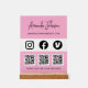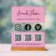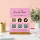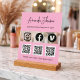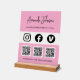 Display this acrylic tabletop sign in your business as a convenient way for your customers to scan the QR codes for social media and payment links. Easily edit with your business name and website. Replace the QR codes with your own. Use the Zazzle editor to change the background colour