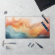 Introducing our Personalised Multicolor Liquid Waves Mat. An abstract ensemble of orange, cream, and blue hues forms a captivating pattern of liquid waves, creating a visually appealing display. Personalise this piece with your name for a truly unique addition to your workspace. The soothing tones blend seamlessly, creating a vibrant splash of colour that invites both inspiration and tranquillity. Turn your workspace into a place of creativity and serenity with this mesmerising mat.
