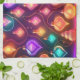 Fun and festive Christmas holiday lights are featured on this festive Christmas kitchen towel.