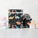 Multicolor Dinosaurs on Black Background Wrapping Paper