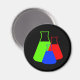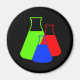 Black magnet with red, blue and green Erlenmeyer flask graphics - colourful science symbols.