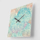 Multicolor Floral Doodle Pattern Square Wall Clock