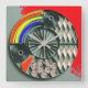 A vibrant circular mandala design inspired by paper-quilling aesthetics, featuring spirals, diamond patterns, starburst details, and striking rainbow and red color accents—ideal for stylish wall clocks.