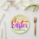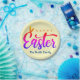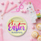 Multicolor Happy Easter- rainbow colour happy easter lettering with bunny ears, yellow background