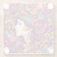Multicolor Retro Hippie Boho style Glass Coaster with inspiration from the 70's. Main feature is a female portrait facing right, surrounded by groovy doodles. Colours are mainly purple with addition of the colours turqoise, pink, orange.