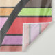 This striking abstract design combines rows of vivid stripes in pink, green, orange, blue, and purple with sweeping black curves that weave rhythmically across the surface. The contrast between structured horizontal lines and free-flowing arcs creates a sense of movement and bold visual energy. Its layered colour palette and dynamic shapes give it a modern, playful character that instantly catches the eye.