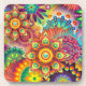 Multicolored Art Deco Flower Shapes Pattern Coaster