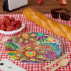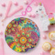 Multicolored Art Deco Flower Shapes Pattern Paper Plate