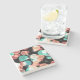 The coasters are gorgeous, a quality feel and heavy weight. They look like a precious archeological find. A rustic stone juxtaposed with a modern floral black and white print. I like the way the print goes slightly imperfect on the cut stone edges giving them a kind-of natural beauty.