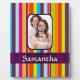 Easily personalise this fun colourful multi coloured candy stripe pattern design by adding your own photo of your loved one and name or text to the templates to make a unique customised product. Visit the PHOTOGIFTZ STORE for matching products. The template photo image text and can easily be replaced with your own, Photographs of the same 4 x 3 dimension should replace the template image exactly. If your photo is of a different dimension you may have to use CUSTOMIZE to adjust the size, of the photo and text, by drag and drop.