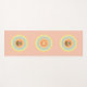 Fashion Eco friendly Yoga mat with cute tiger cat emerging from multicolored circles on coral pink background. Central multicolored circles have the M letter only. Cats and the M letter can be customised.
